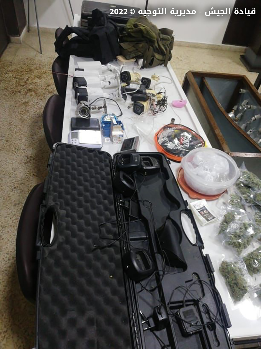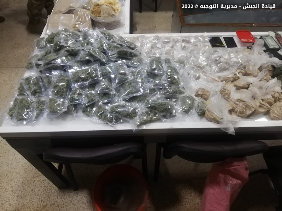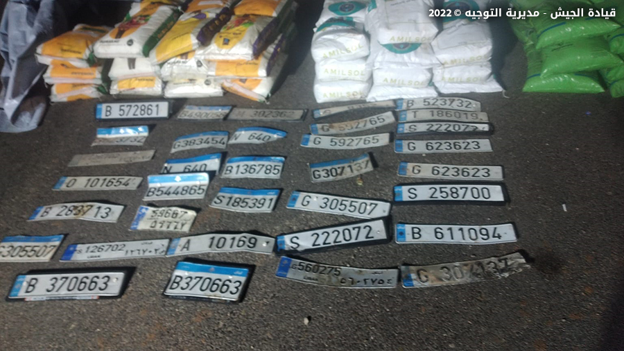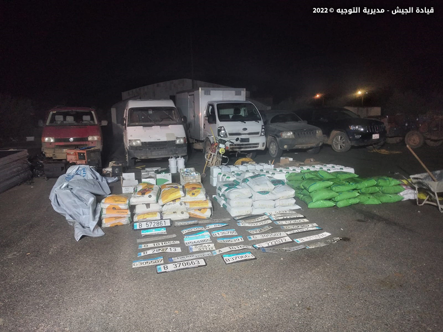وضبطت القوة داخل المنزلين كمية من المخدرات وحبوب الكبتاغون، وعدداً من السيارات والجرارات الزراعية والدراجات النارية المسروقة، وأسلحة وذخائر حربية وأعتدة عسكرية وكاميرات مراقبة ولوحات سيارات مسروقة ودفاتر سيارات مزورة ومسروقة، وأسمدة زراعية وأسلاكاً كهربائية وهواتف خلوية.
