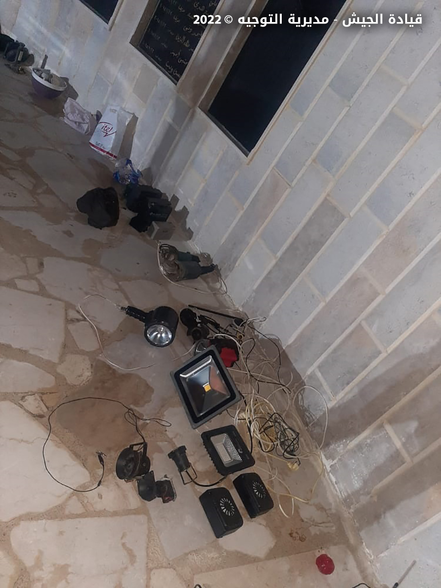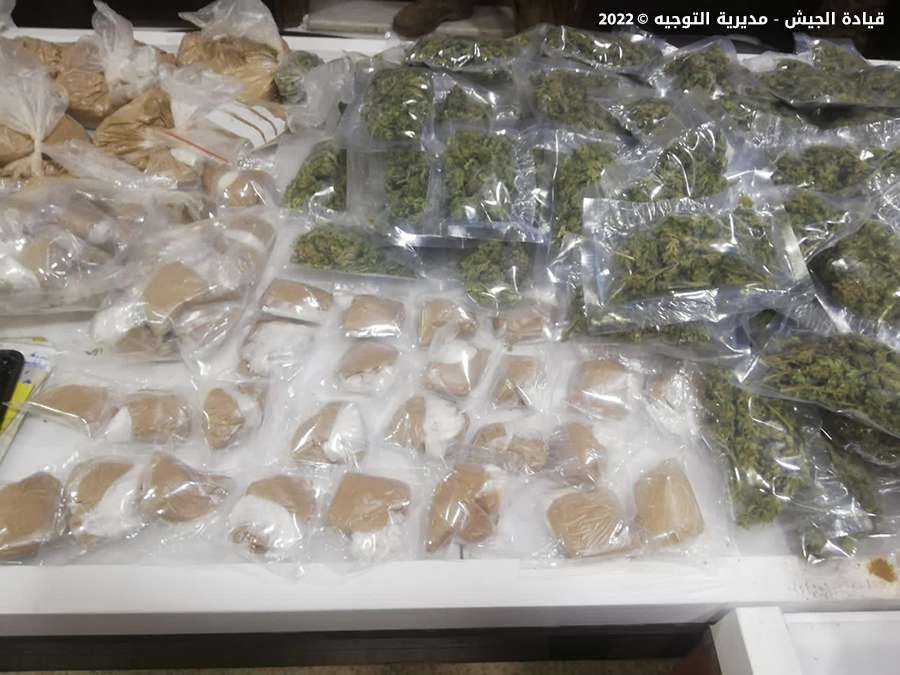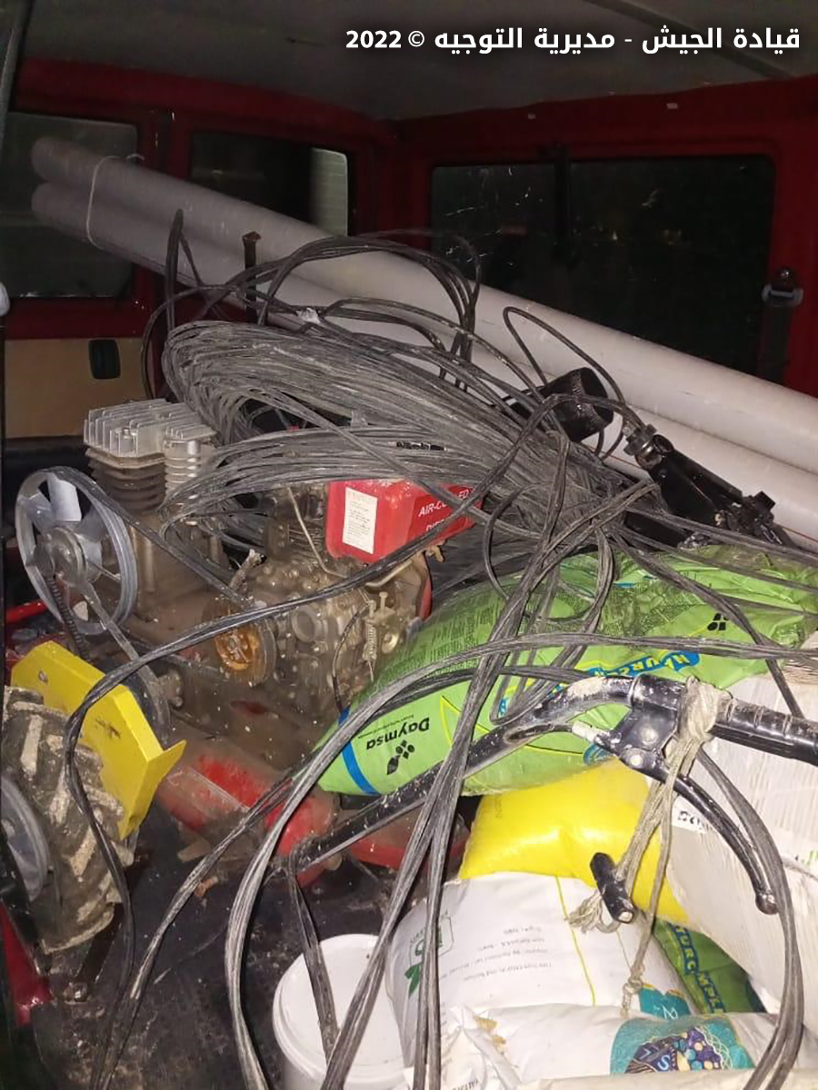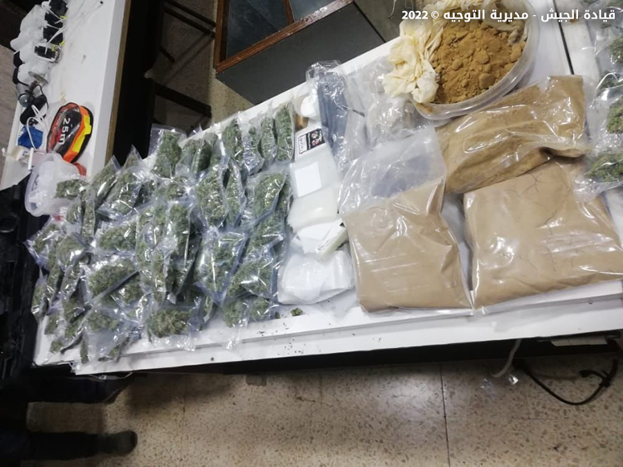 وضبطت القوة داخل المنزلين كمية من المخدرات وحبوب الكبتاغون، وعدداً من السيارات والجرارات الزراعية والدراجات النارية المسروقة، وأسلحة وذخائر حربية وأعتدة عسكرية وكاميرات مراقبة ولوحات سيارات مسروقة ودفاتر سيارات مزورة ومسروقة، وأسمدة زراعية وأسلاكاً كهربائية وهواتف خلوية.